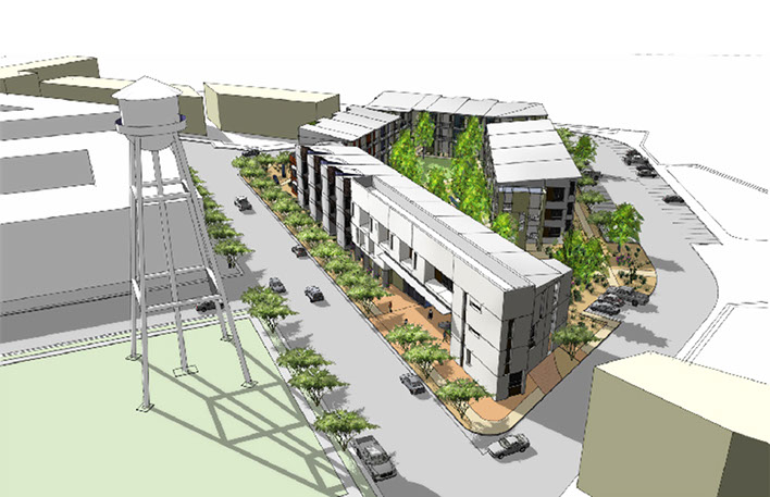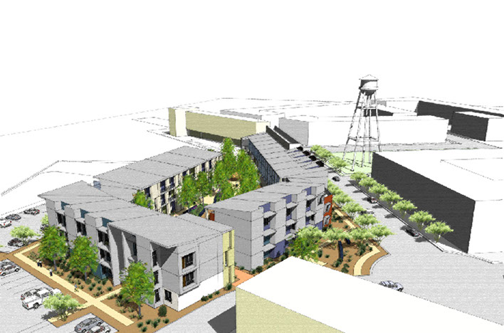CROSSTOWN station is a new 72 unit mixed income, transit oriented development in Las Cruces, NM. Twelve of the units will be market rate. The project is an infill development on a site formerly occupied by an industrial cotton storage and compress operation.